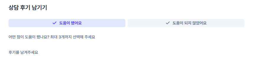 '도움이 됐어요'를 클릭하고 후기를 남겼는데, 도움되는점 선택을 하지 않아서 화면이 넘어가지가 않아요.. 도움되는점 선택하려고 해도 아무것도 안뜨는데 저만 안보이는건가요..?