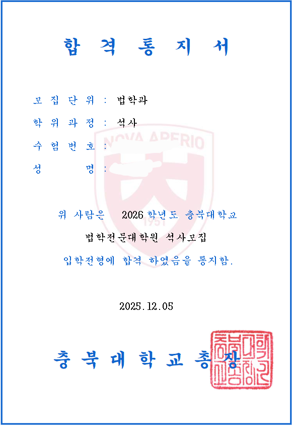 합격 소감 3년의 수험생활 끝에 합격할수 있어 다행입니다. 비인가 법대 복전에 학점도 낮지만 리트를 끌어올려서 어떻게든 최초합을 이뤄냈습니다. 학점이 높았다면 영어를 잘했다면 하는 아쉬움이 있기는 하지만 2년간 쳐다보지 못한 학교로 가는것이 기쁩니다 시기별/과목별 리트 학습법 [ ] << 사용한 책 1. 기출문제 (유형별 기출이 아니라 그냥 n개년) [메가로스쿨 기출문제 해설집] 첫회독 때는 언어이해: 지문당/ 추리논증: 문제당 으로 풀며, 시간보다 유형에 익숙해지는 연습 (이미 유형에 익숙하다면 언어이해: 지문당 7분/추리논증: 문제당 3분). 주의할 점: 오답은 분석하는 것이 아니라 틀린 이유와 근거를 보고 느낌을 가져간 다음 기억에서 지우도록 바로 넘어감. 그래야 다음번에 기출 풀때 새로운 느낌으로 다시 한번 마주할 수 있음 (기억의 습작 방지) +옛날 기출은 1지문에 3문제가 아닌 지문도 있기에 시간 잴떄 주의 2. 유형문제집 (n제) [언어이해: 메가로스쿨 유형별문제집/ 추리논증: 법률저널 the400제 추리논증] 여기서는 시간 카운팅 하면서 연습 (시간은 위와 동일), 최대한 시간에 맞춰서 할 수 있는 최선을 다하는 연습 (ex. 언어이해에서 글이 잘 안읽히는 주제라면 <보기> 문제는 버리고 2문제라도 맞추는 연습 등) 3. 실전모의고사 +기출 회독 (프린트해서) [법률저널 전국모의고사, 법률저널 봉투모의고사, 메가로스쿨 파이널실전모의...] 하루에 기출 1세트 실모 1세트씩 풀었음. 초반에는 언어이해는 3지문 20분/ 추리논증은 10문제 30분으로 나눠서 연습. 이후 집중력 훈련을 위해 70분/120분으로 시간 늘려가며 연습. 실모는 2회독 해보는것도 좋기에 (낯선 문제 경험) 스캔 떠서 프린트해서 1번 풀고 2주정도 후에 시험지에 다시 한번 풀어보는 것도 도움됨 자소서, 면접 준비 방법 자소서는 그냥 피드백 받으며 계속 써나갔고, 구체화에 노력을 많이 했습니다. 디테일하게 이 수업에서 뭘 보고 느꼈는지를 작성했으며, 봉사 하나도 의미있는 경험으로 녹여내려 노력했습니다. 면접은 면접스터디를 주2회, 직전에는 주4회로 연습했습니다. 후배들에게 하고 싶은 말 비인가 법대나 저학벌, 저학점, 저영어 분들도 리트가 125 이상이면 충분히 갈 학교가 있습니다. 리트 적성은 아무도 모르는 일이기에 학벌이나 학점이 낮아도 포기하지 마시고 도전하셔서 적성을 확인하고 로입 도전을 하셨으면 좋겠습니다