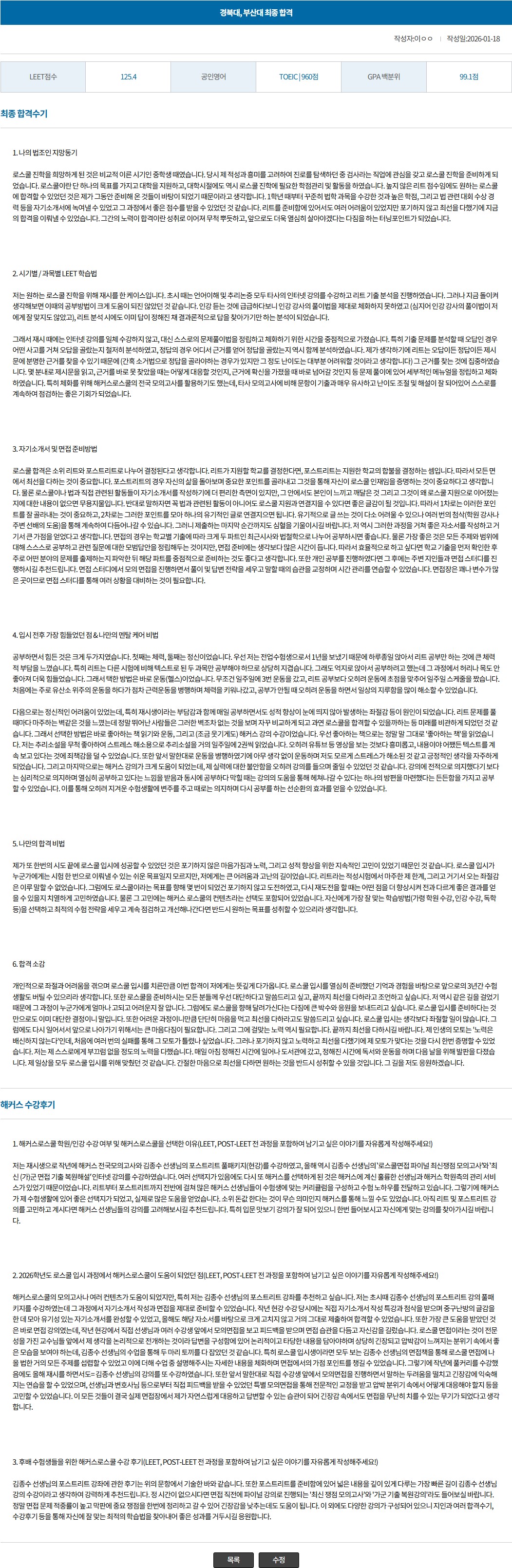 2년 간의 로스쿨 입시를 마치고 마침내 합격하게 되어 감사한 마음을 담아 합격수기를 남깁니다. 로스쿨 입시를 겪으며 얼마나 힘들고 고된 길인지 알기에, 앞으로 로스쿨 입시를 준비하는 후배님들이 계시다면 조금이나마 도움이 되길 바랍니다. 또한 힘이 닿는 곳까지 포기하지 마시고 최선을 다하시길, 제가 응원하겠습니다. 자세한 합격수기를 위해 아래의 링크를 남깁니다. #해커스로스쿨 https://lawschool.hackers.com/?c=event&evt_code=44325322&num=3&memberIdx=8233911&boardIdx=3205&isView=1